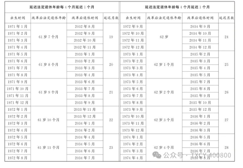 第一條?從2025年1月1日起,男職工和原法定退休年齡為五十五周歲的女職工,法定退休年齡每四個(gè)月延遲一個(gè)月,分別逐步延遲至六十三周歲和五十八周歲;原法定退休年齡為五十周歲的女職工,法定退休年齡每二個(gè)月延遲一個(gè)月,逐步延遲至五十五周歲。國家另有規(guī)定的,從其規(guī)定。