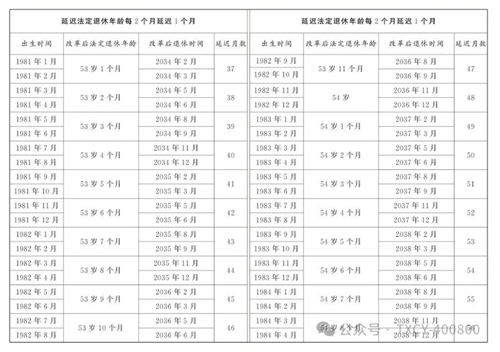 1.男職工延遲法定退休年齡對(duì)照表