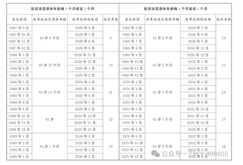 第一條?從2025年1月1日起,男職工和原法定退休年齡為五十五周歲的女職工,法定退休年齡每四個(gè)月延遲一個(gè)月,分別逐步延遲至六十三周歲和五十八周歲;原法定退休年齡為五十周歲的女職工,法定退休年齡每二個(gè)月延遲一個(gè)月,逐步延遲至五十五周歲。國家另有規(guī)定的,從其規(guī)定。